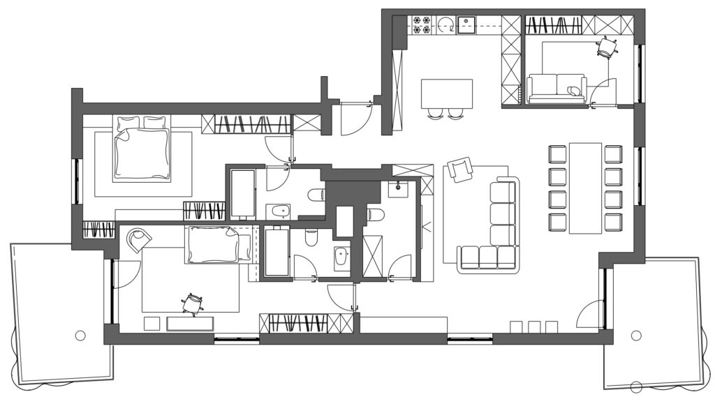 Prostor je dizajniran s minimalističkim pristupom, gdje su boje i materijali usklađeni kako bi stvorili mirnu i ugodnu atmosferu. Prozračni prostori, jednostavan raspored i kvalitetni materijali omogućili su maksimalnu iskorištivost prostora, zadržavajući osjećaj svjetlosti i otvorenosti.