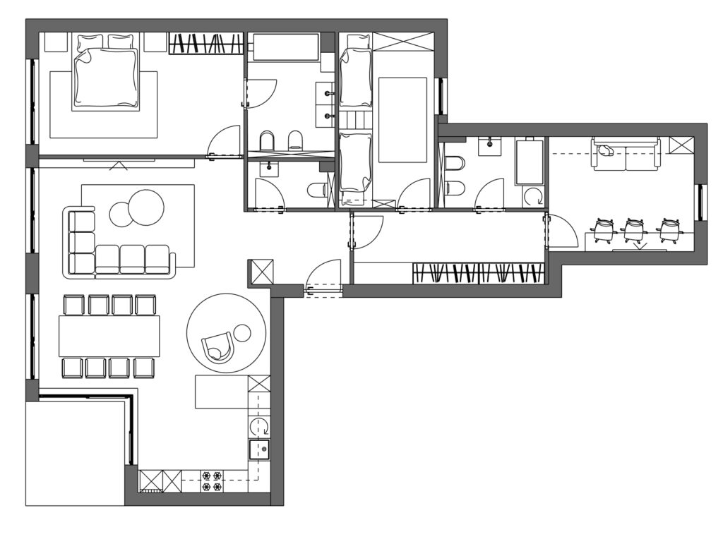 Stan je dizajniran kako bi zadovoljio zahtjeve modernog života, s naglaskom na prozračnost, praktičnost i estetski dizajn. Koristili smo neutralne tonove i kvalitetne materijale kako bismo stvorili prostor koji je ugodan za život i atraktivan za oko.