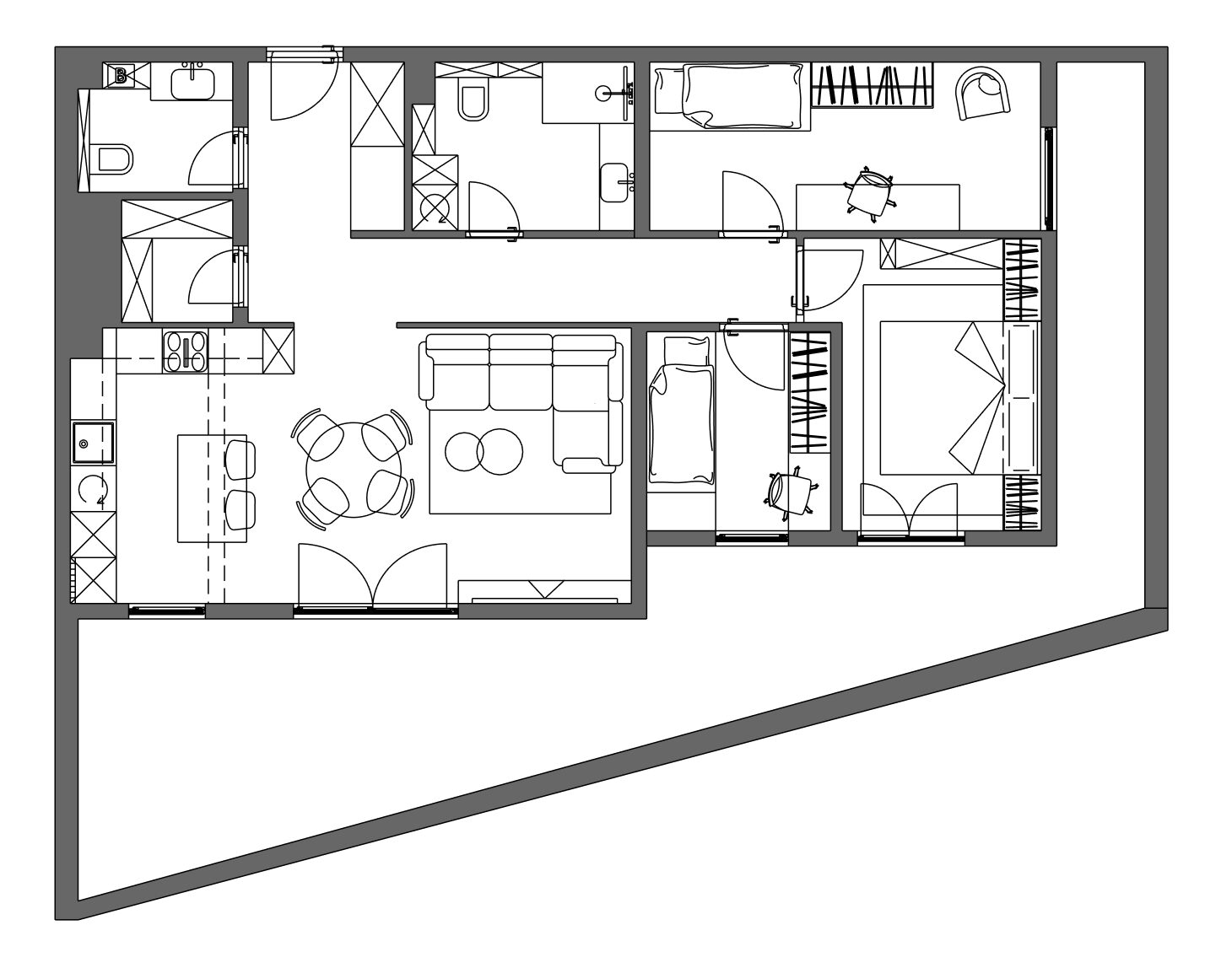 Stan Sloboština dizajniran je s naglaskom na otvorenost i prirodno svjetlo. Korištenjem neutralnih tonova u kombinaciji s drvenim elementima postignut je topao i ugodan ambijent. Promišljeno pozicioniran namještaj omogućuje maksimalno iskorištavanje prostora, dok su detalji u boji unijeli dozu svježine i karaktera.